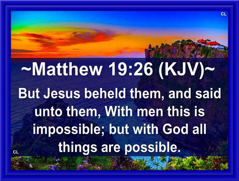 ( Mark 10:27 KJV ) “And Jesus-Yeshua Looking upon them Saith, With men it is impossible, but not with GOD: for with GOD all Things are Possible.”!!
