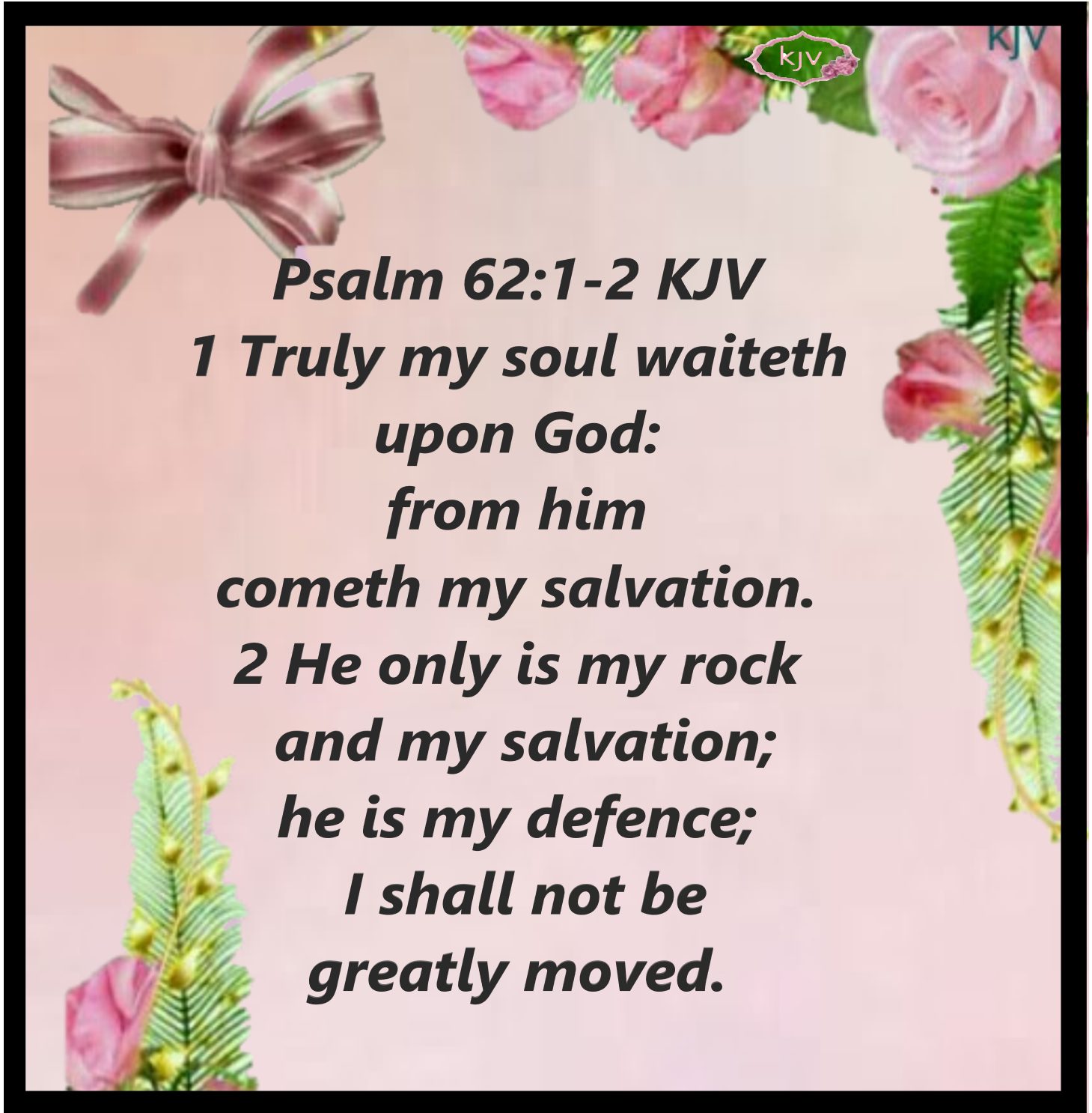 ( PSALMS 62:1-2 KJV ) ( To the chief Musician, to Jeduthun, A Psalm of David. ) Truly my Soul Waiteth upon GOD: from HIM cometh my Salvation. HE only is my Rock and my Salvation; HE is my Defence; I shall not be greatly moved.!! AMEN-AMEIN ❤ HALLEUJAH ❤ MARANATHA ❤ Rock of Ages HALLELUJAH ❤ MARANATHA ❤