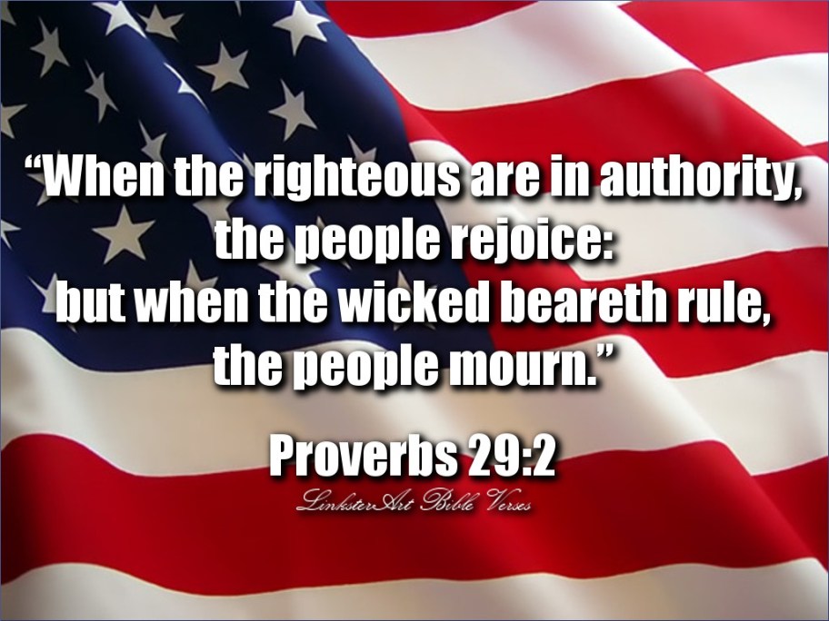 ( Proverbs 29:2 KJV ) “When the Righteous are in Authority, the People Rejoice: but when the wicked beareth rule, the people mourn.”!!