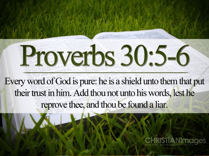 “Every Word of God is pure: He is a Shield unto them that put their trust in Him. Add thou not unto His Words, lest He reprove thee, and thou be found a liar.”