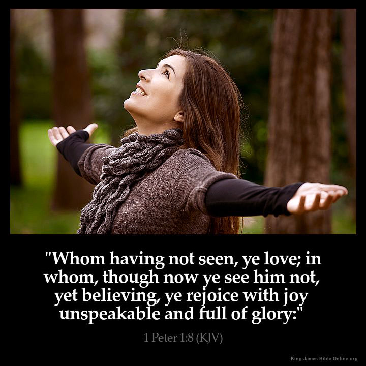 “Whom having not seen, ye Love; in whom, though now ye see Him not, yet believing, ye Rejoice with Joy Unspeakable and full of Glory:” ( I Peter 1:8 KJV )