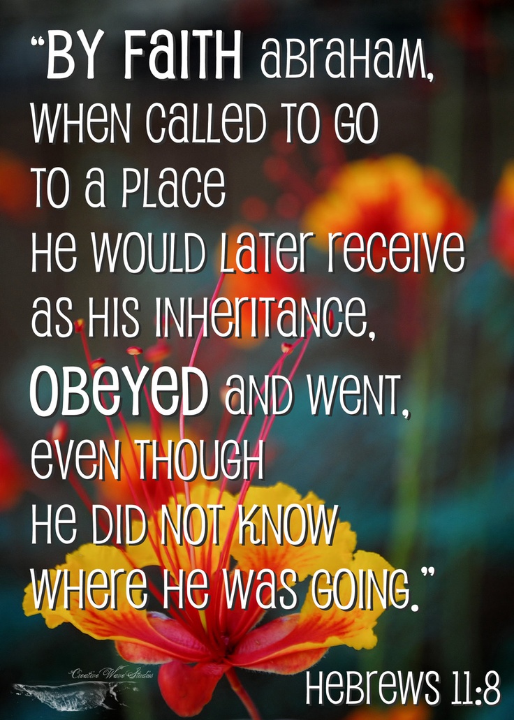 “By Faith Abraham, when he was called to go out into a place which he should after receive for an inheritance, obeyed; and he went out, not knowing whither he went.”( Hebrews 11:8 KJV 1611 AV )