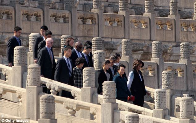 - ( More guards than guarded? The two first ladies (front) strolled through Beijing’s Forbidden City with their protection details close at hand.. )