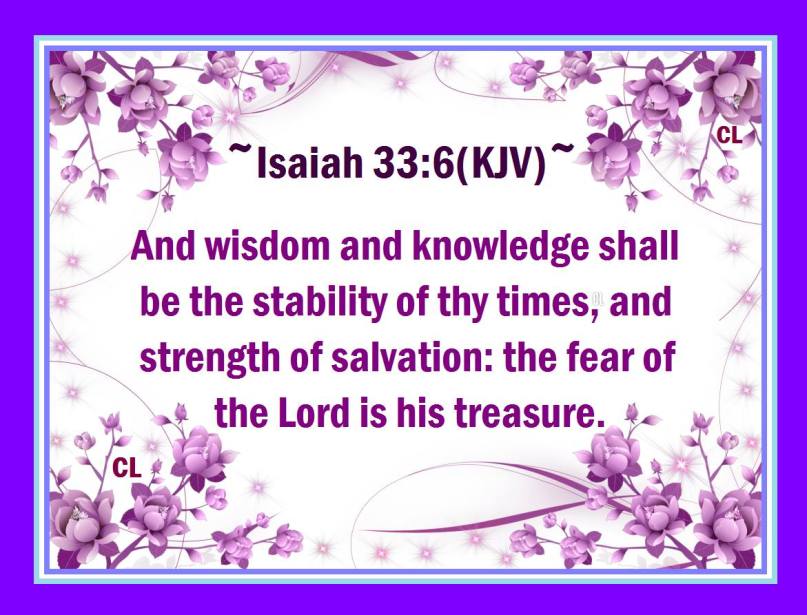 “And wisdom and knowledge shall be the stability of thy times, and  strength of salvation: the fear of the LORD is  His treasure.” ( Isaiah 33:6 KJV )!!