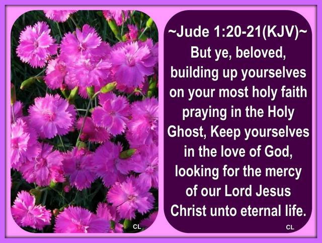 “But ye, beloved, building up yourselves on your most holy faith, praying in the Holy Ghost, Keep yourselves in the love of God, looking for the mercy of our Lord Jesus Christ unto eternal life.”