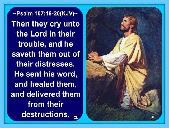 “Then they cry unto the LORD in their trouble, and He saveth them out of their distresses. He sent His Word, and healed them, and delivered them from their destructions.” ( Psalms 107:19-20 KJV )!!