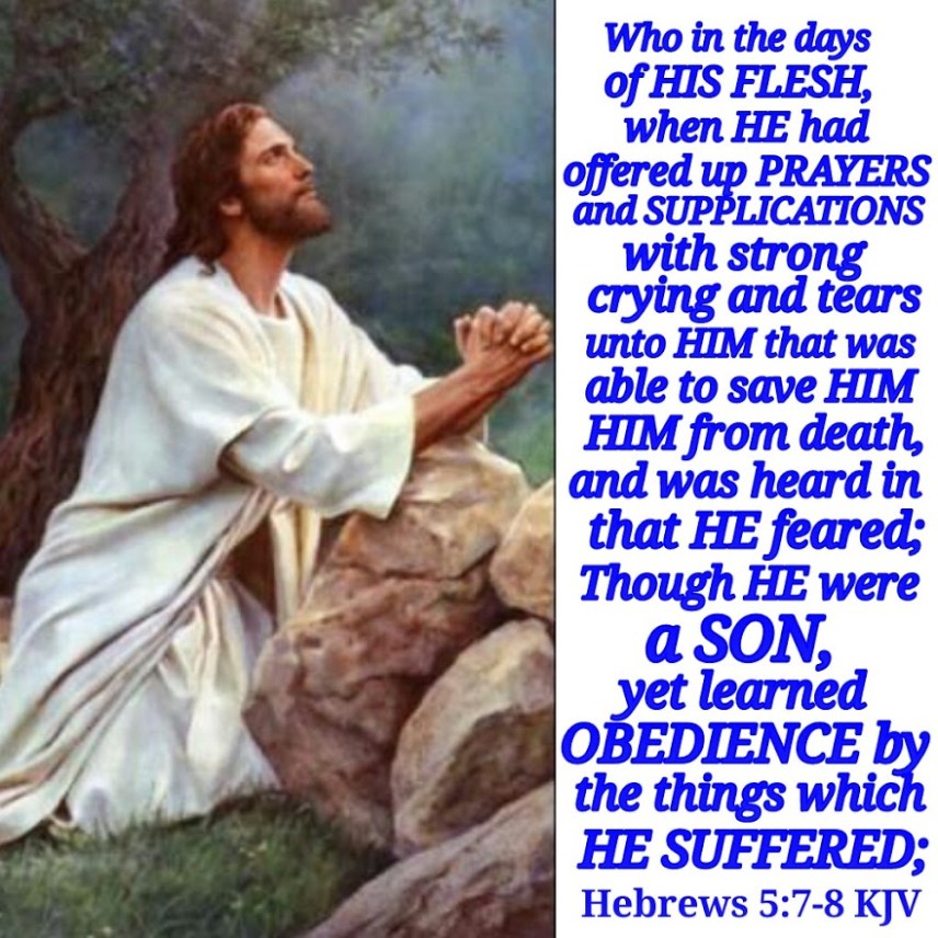 “Who in the days of His Flesh, when He had offered up prayers and supplications with strong crying and tears unto Him that was able to save Him from death, and was heard in that He feared; Though He were a Son, yet learned He obedience by the things which He Suffered;” ( Hebrews 5:7-8 KJV )!!
