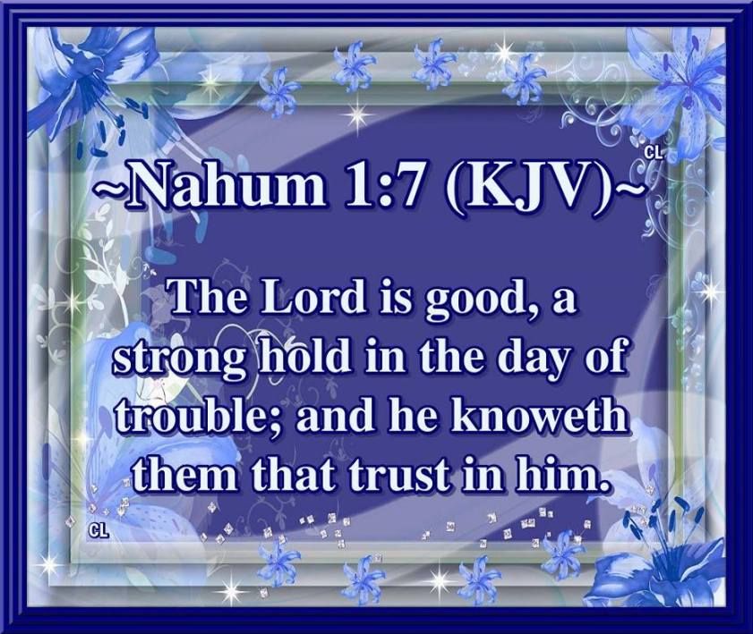 Nahum 1:7 KJV ) “The LORD is good, a strong hold in the day of trouble; and He knoweth them that trust in Him.”!!