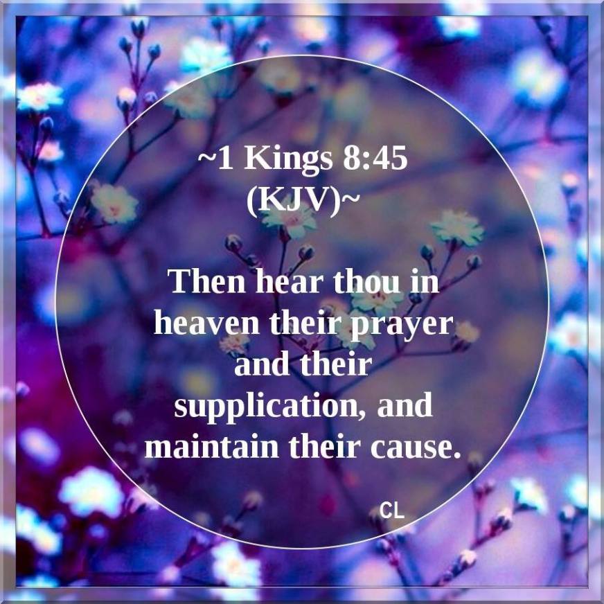 ( I Kings 8:45 KJV ) “Then Hear thou in Heaven their Prayer and their supplication, and maintain their cause.”!!