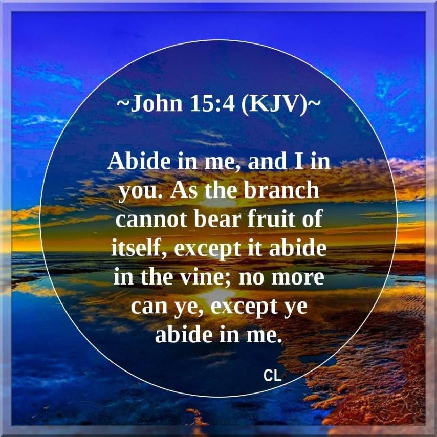 ( John 15:4-5 KJV ) “Abide in ME, and I In you. As the Branch cannot bear fruit of itself, except it Abide in the Vine; no more can ye, except ye Abide In ME. I AM the Vine, ye are the branches: He that Abideth in ME, and I In him, the Same Bringeth forth Much fruit: for without ME ye can do nothing”!!
