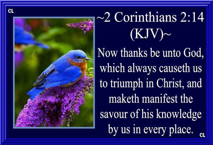 ( II Corinthians 2:14 KJV ) “Now Thanks be unto GOD, which always Causeth us to Triumph in Christ, and Maketh Manifest the Savour of His Knowledge by us in Every place.”!!