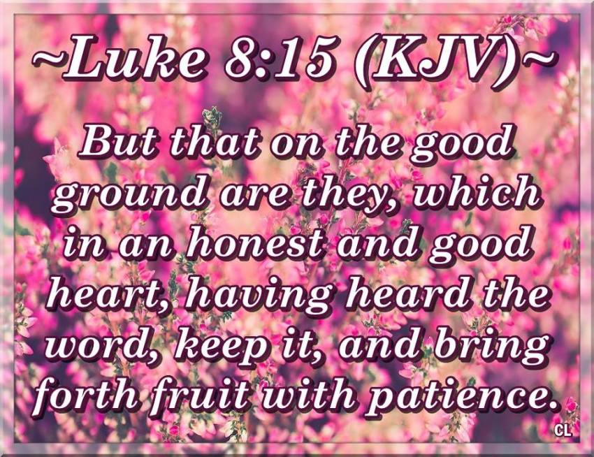 ( Luke 8:15 KJV ) “But that on the good ground are they, which in an Honest and Good Heart, having Heard the WORD, keep it, and bring forth Fruit with Patience.”!!