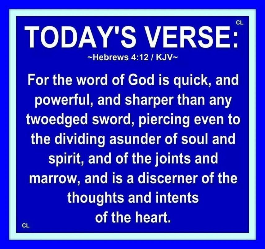 ( Hebrews 4:12 KJV ) “For the WORD of GOD is quick, and Powerful, and Sharper than any two-edged sword, Piercing even to the Dividing Asunder of Soul and Spirit, and of the joints and marrow, and is a Discerner of the thoughts and intents of the Heart.”!!