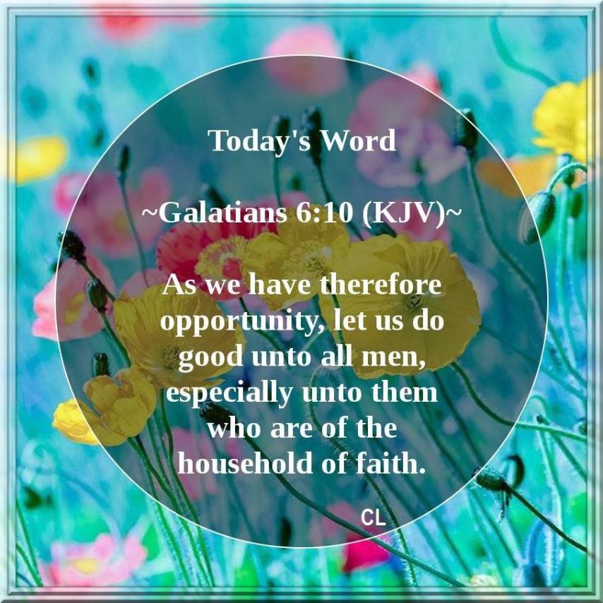 ( Galatians 6:10 KJV“As we have therefore Opportunity, let us do Good unto all men, Especially unto Them Who Are of the Household of Faith.”!!