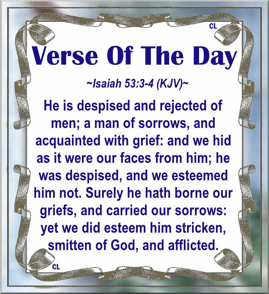 ( Isaiah 53:3-4 KJV ) “HE is despised and rejected of men; a man of sorrows, and acquainted with grief: and we hid as it were our faces from HIM; HE was despised, and we Esteemed HIM not. Surely HE hath Borne our griefs, and Carried our sorrows: yet we did Esteem HIM stricken, smitten of GOD, and afflicted.”!!