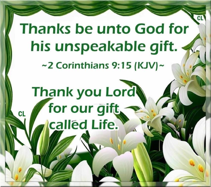 3 thoughts on “Thanks be unto GOD for HIS Unspeakable Gift and more Blessings!!
