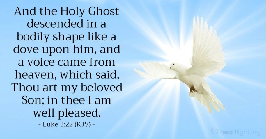 Luke 3:22 KJV ) “And the HOLY GHOST descended in a bodily shape like a DOVE upon HIM, and a Voice Came from HEAVEN, which Said, Thou art MY Beloved SON; in thee I AM Well Pleased.”!! Amen-Amein Hallelujah and Maranatha!!