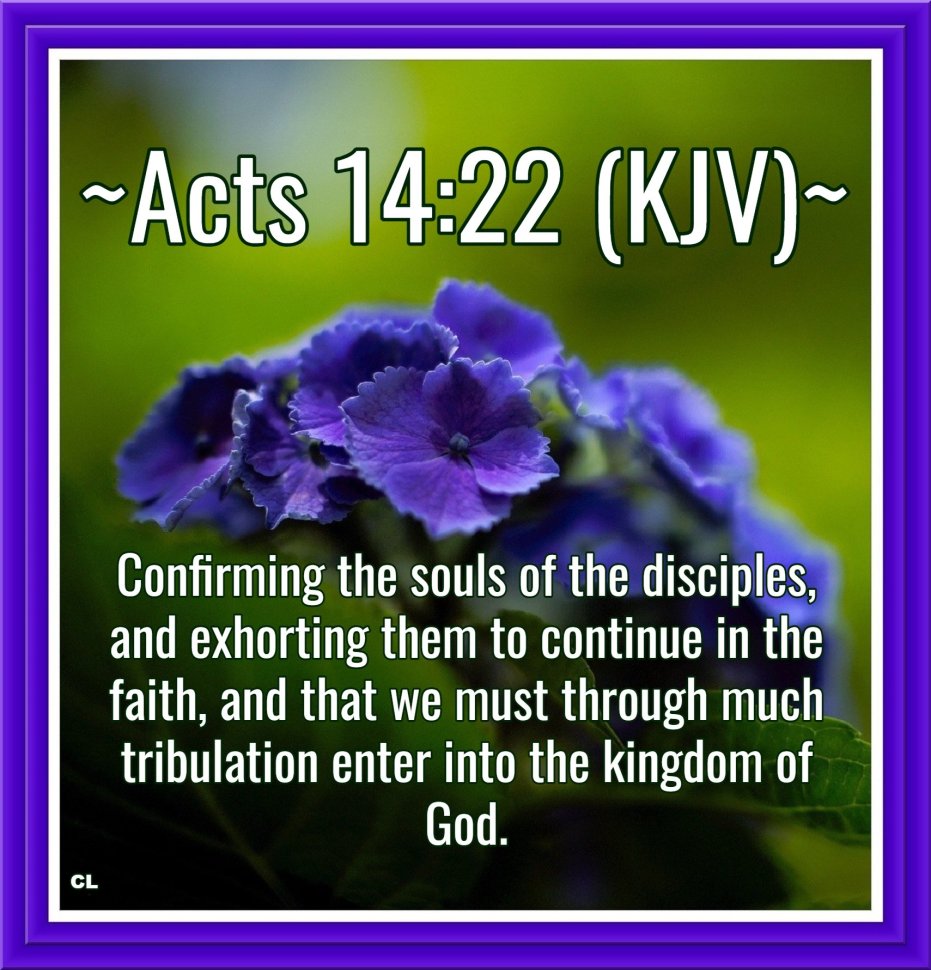 ( Acts 14:22 KJV ) “Confirming the souls of the Disciples, and Exhorting them to Continue in the Faith, and that we must through much Tribulation enter into the Kingdom of GOD.”!! Sing Glory Glory Hallelujah Amen!!