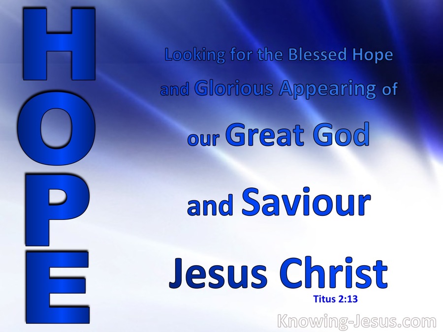 ( Titus 2:13 KJV ) “Looking for that BLESSED HOPE, and the Glorious Appearing of the GREAT GOD and our SAVIOUR Jesus Christ.”!!