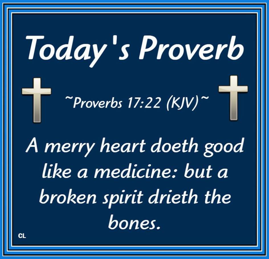 ( Proverbs 17:22 KJV ) “A Merry Heart doeth Good Like a Medicine: but a broken spirit drieth the bones.”!!