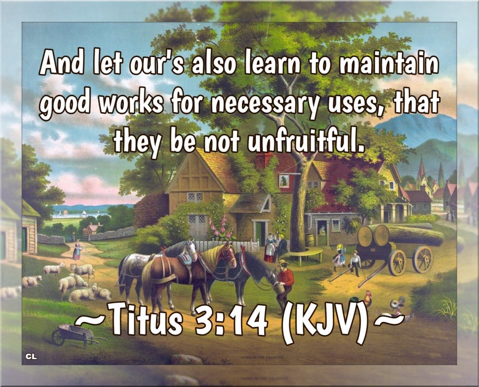 ( Titus 3:14 KJV ) “And let ours also learn to maintain good works for necessary uses, that they be not unfruitful.”!!