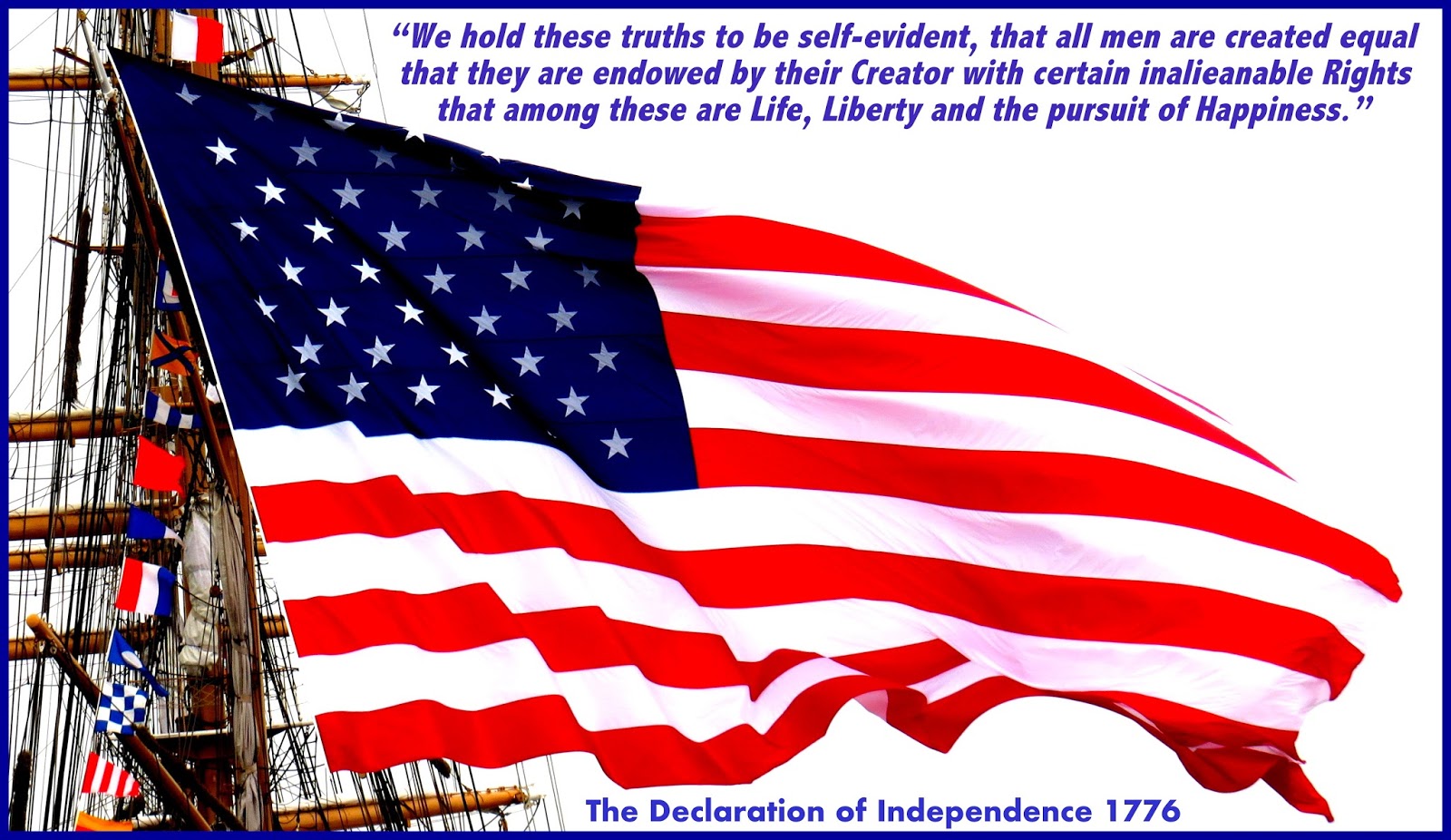 We hold these Truths to be self-evident, that all men ( and women ) are created Equal, that they are Endowed by their CREATOR ( GOD the HEAVENLY FATHER and HIS SON JESUS-YESHUA CHRIST-MESSIAH ) with certain unalienable Rights, that among these are Life, Liberty and the Pursuit of Happiness!! Hallelujah and Amen!!
