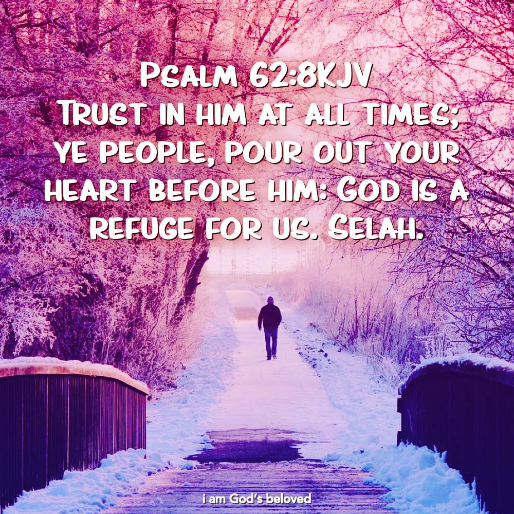 ( PSALMS 62:8 KJV ) “Trust in him at all times; ye people, pour out your heart before him: GOD is a Refuge for us. SELAH.”!!