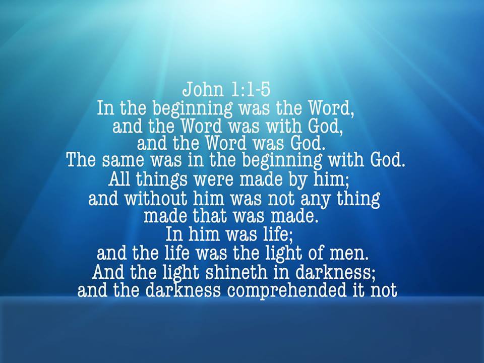 ( JOHN 1:1-5 KJV ) “ In the Beginning was the WORD, and the WORD was with GOD, and the WORD was GOD. The same was in the Beginning with GOD. All things were made by HIM; and without HIM was not any thing made that was made. In HIM was LIFE; and the LIFE was the Light of men. And the Light Shineth in darkness; and the darkness comprehended it not.!! Sing Glory Glory Hallelujah Amen-Amein