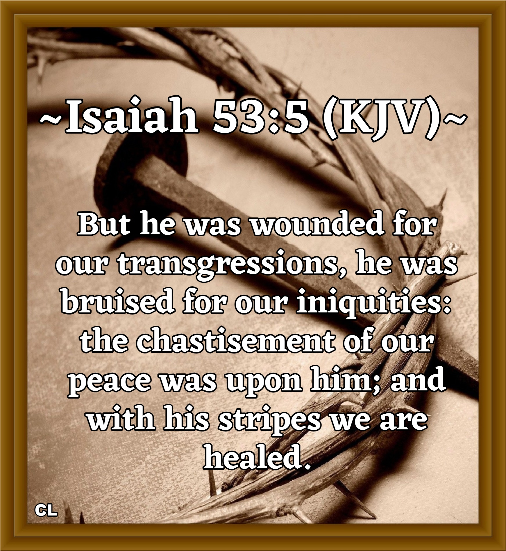 ( Isaiah 53:5-6 KJV ) “But HE ( Jesus-Yeshua ) was Wounded for our Transgressions, HE was bruised for our iniquities: the chastisement of our Peace was upon HIM; and with HIS Stripes we are Healed. All we like Sheep have gone astray; we have turned every one to his own way; and the LORD hath laid on HIM the iniquity of us all.” ❤ SELAH ❤