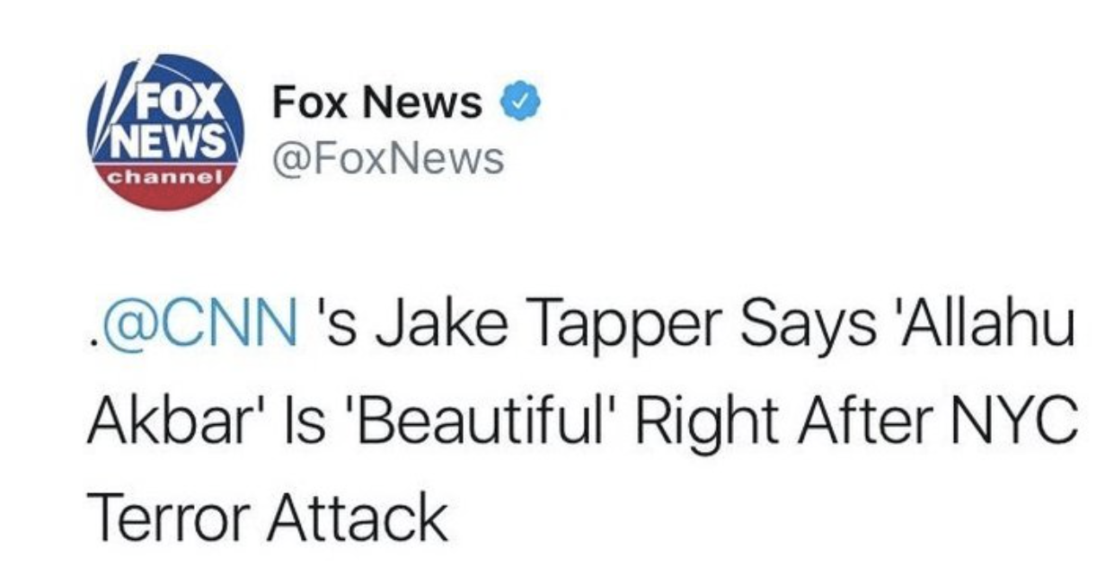 Jake Tapper to make it appear as if he had said “Allahu Akbar” can be used under the most “beautiful circumstances“.!!