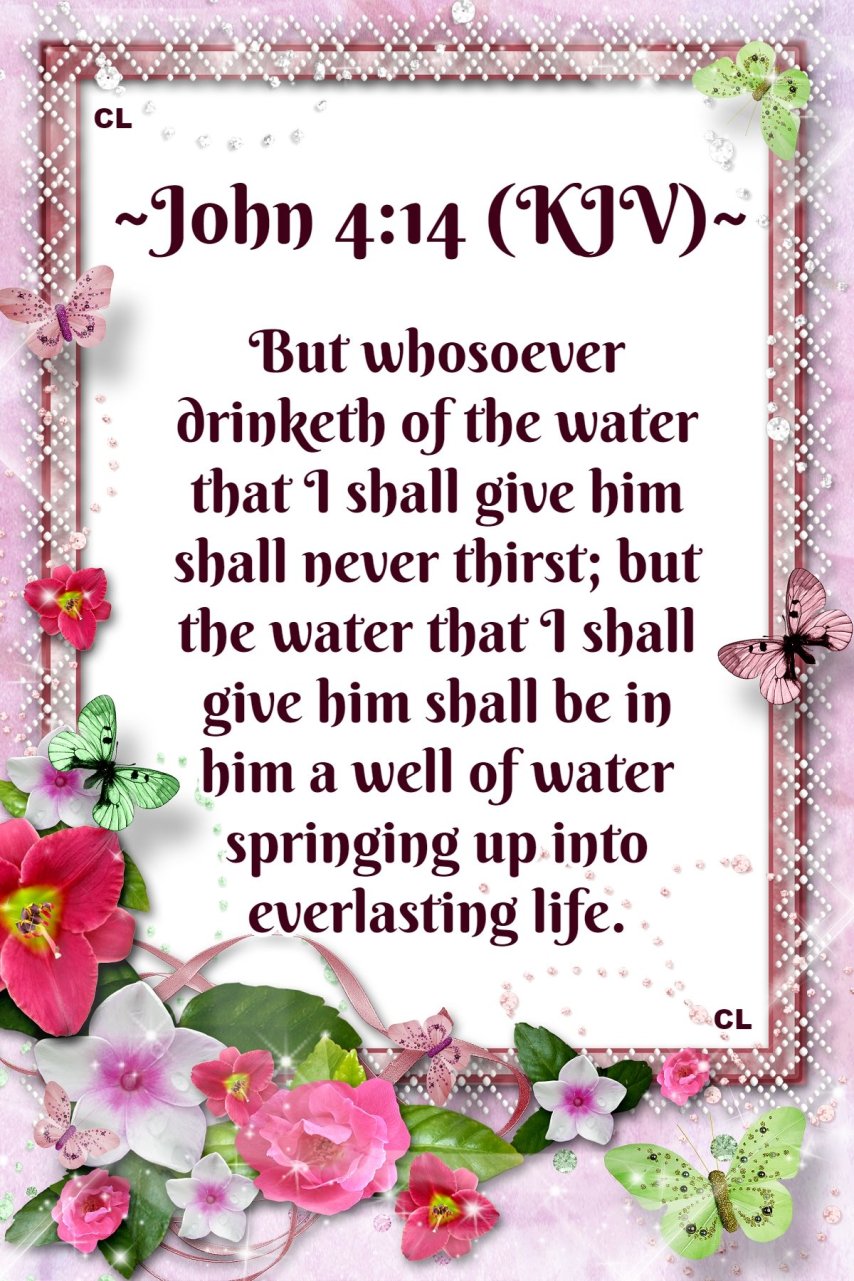 ( John 4:14 KJV ) “But whosoever Drinketh of the Water that I Shall Give him shall never thirst; but the water that I shall give him shall be in him a well of water springing up into Everlasting Life.”!!
