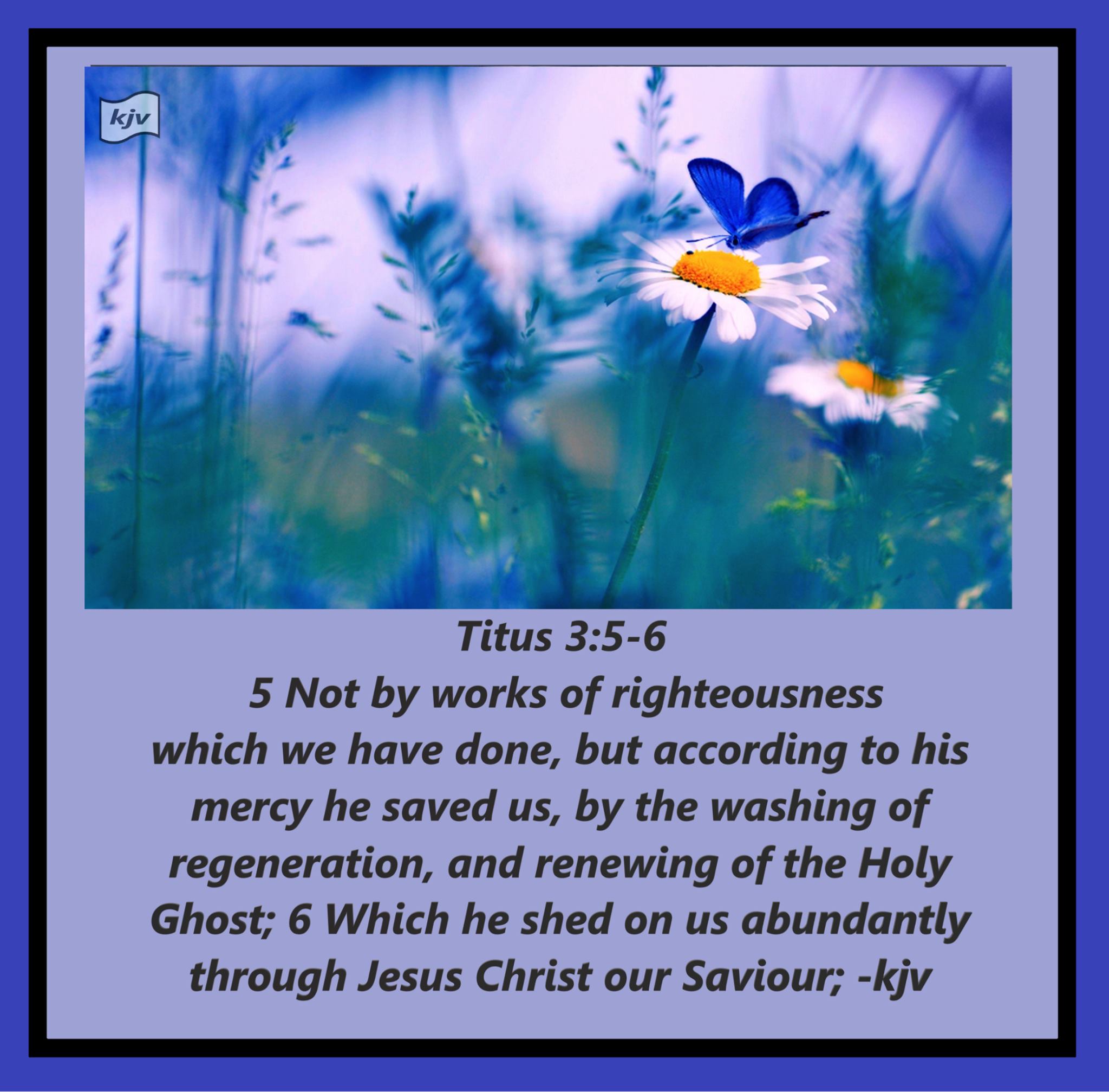 ( Titus 3:5-6 KJV ) “Not by works of righteousness which we have done, but according to HIS mercy HE Saved us, by the Washing of Regeneration, and Renewing of the HOLY GHOST; Which HE Shed on us Abundantly through JESUS CHRIST our SAVIOUR;”!! AMEN-AMEIN