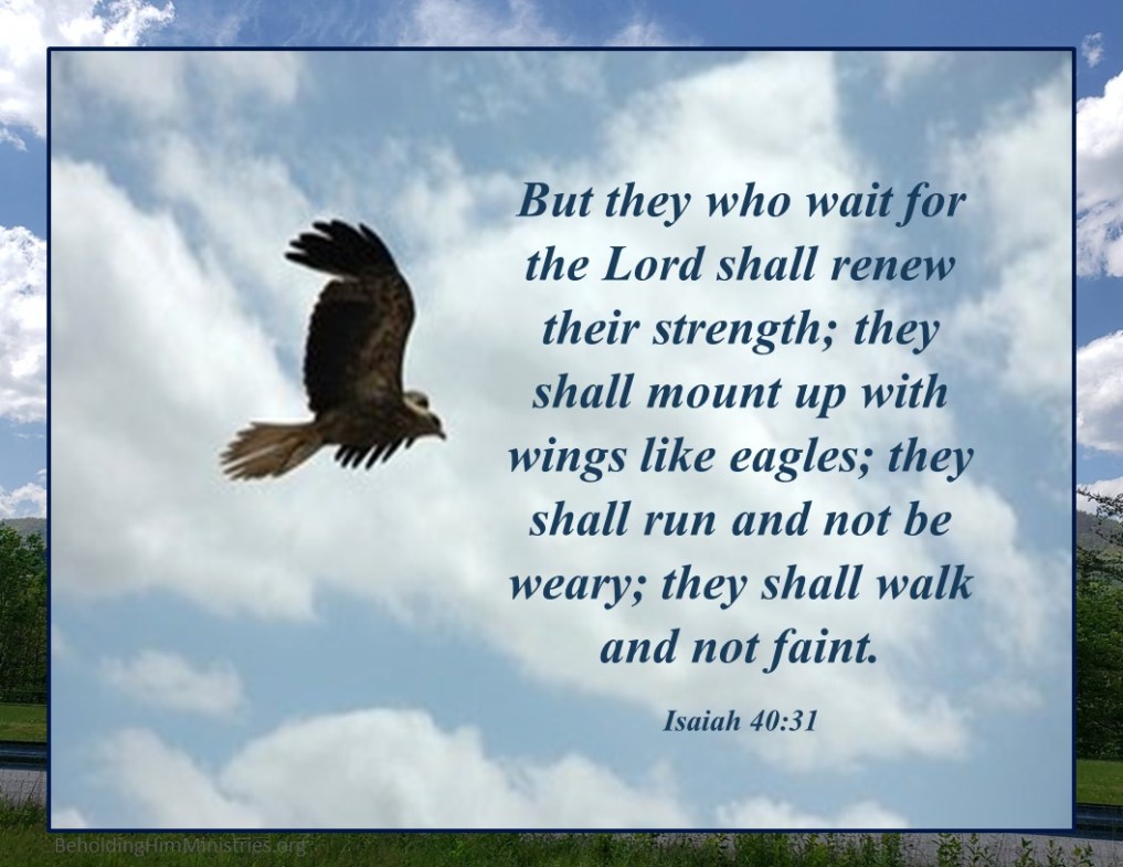 ( Isaiah 40:31 KJV ) “But they that Wait upon the LORD shall Renew their Strength; they Shall Mount Up with Wings as Eagles; they shall Run, and not be weary; and they shall Walk, and not Faint”. !!