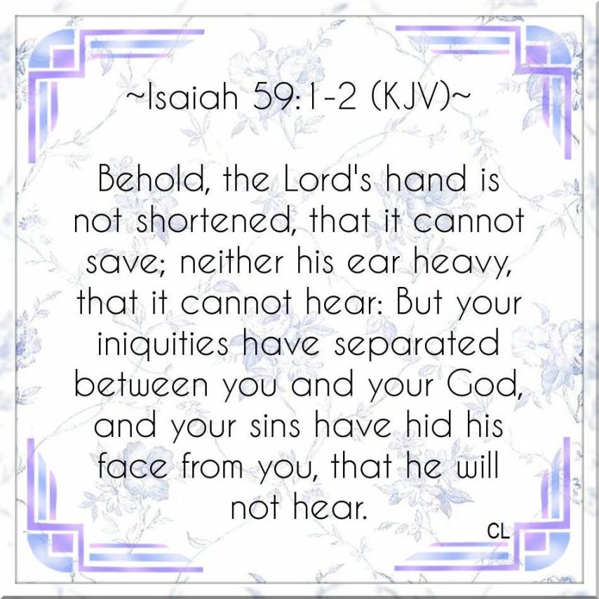 ( Isaiah 59:1-2 KJV ) “Behold, the LORD’S Hand is Not shortened, that it cannot save; neither His Ear heavy, that it cannot hear: But your iniquities have separated between you and your GOD, and your sins have hid His Face from you, that He will not hear.”!!